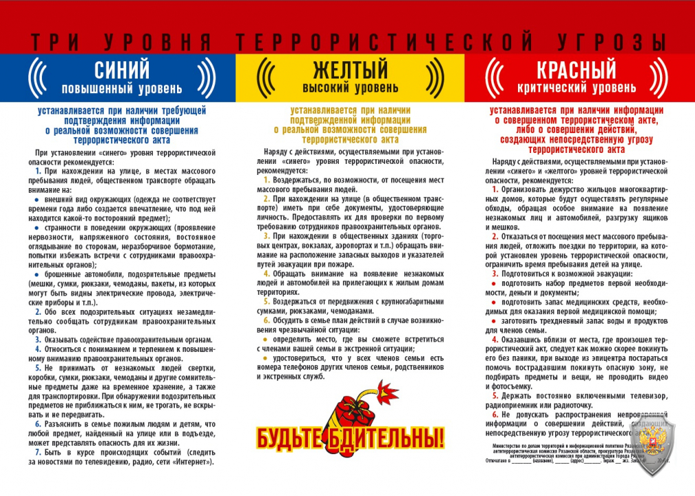 ПамяткаТри уровня террористической угрозы.